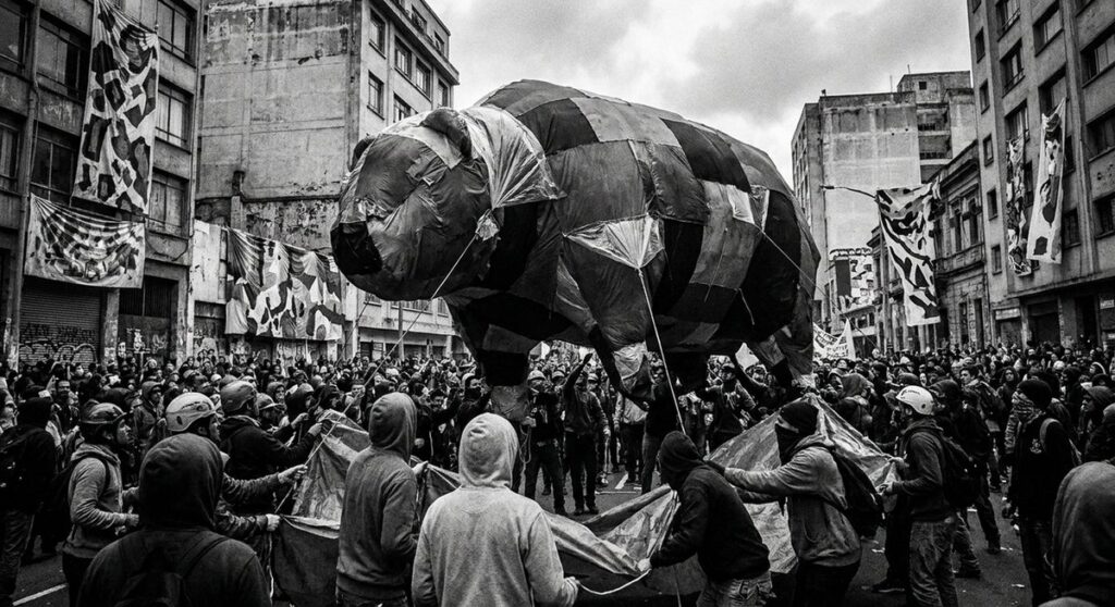 For Vorotnikov, protest itself doesn’t make sense without outstanding action. The conversation reveals a radical position: that political art must go beyond conventional demonstration to create events so striking that they penetrate public consciousness. Voina’s practice — which has included painting a giant phallus on a drawbridge facing the FSB headquarters — deliberately courts legal consequences as proof of artistic-political commitment.